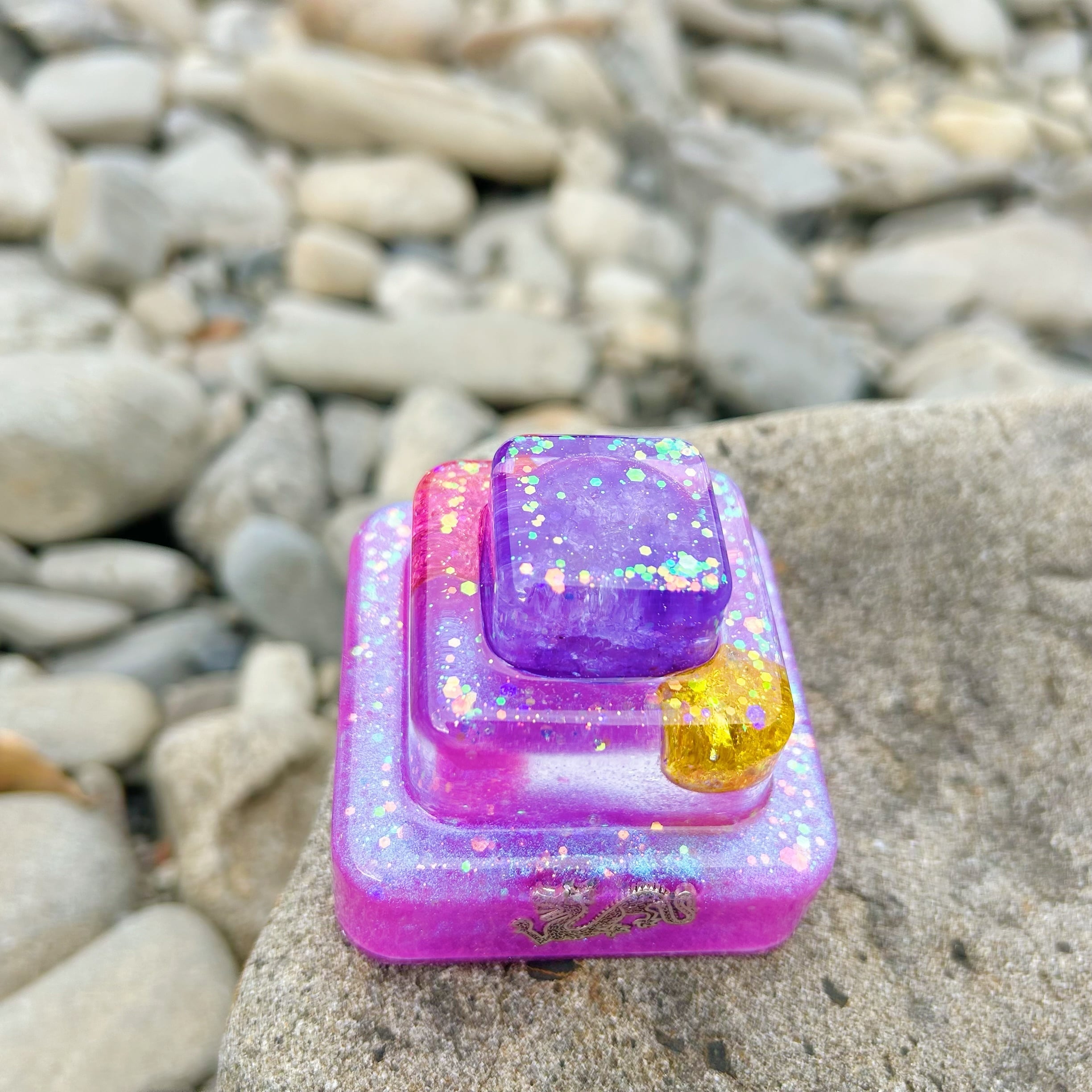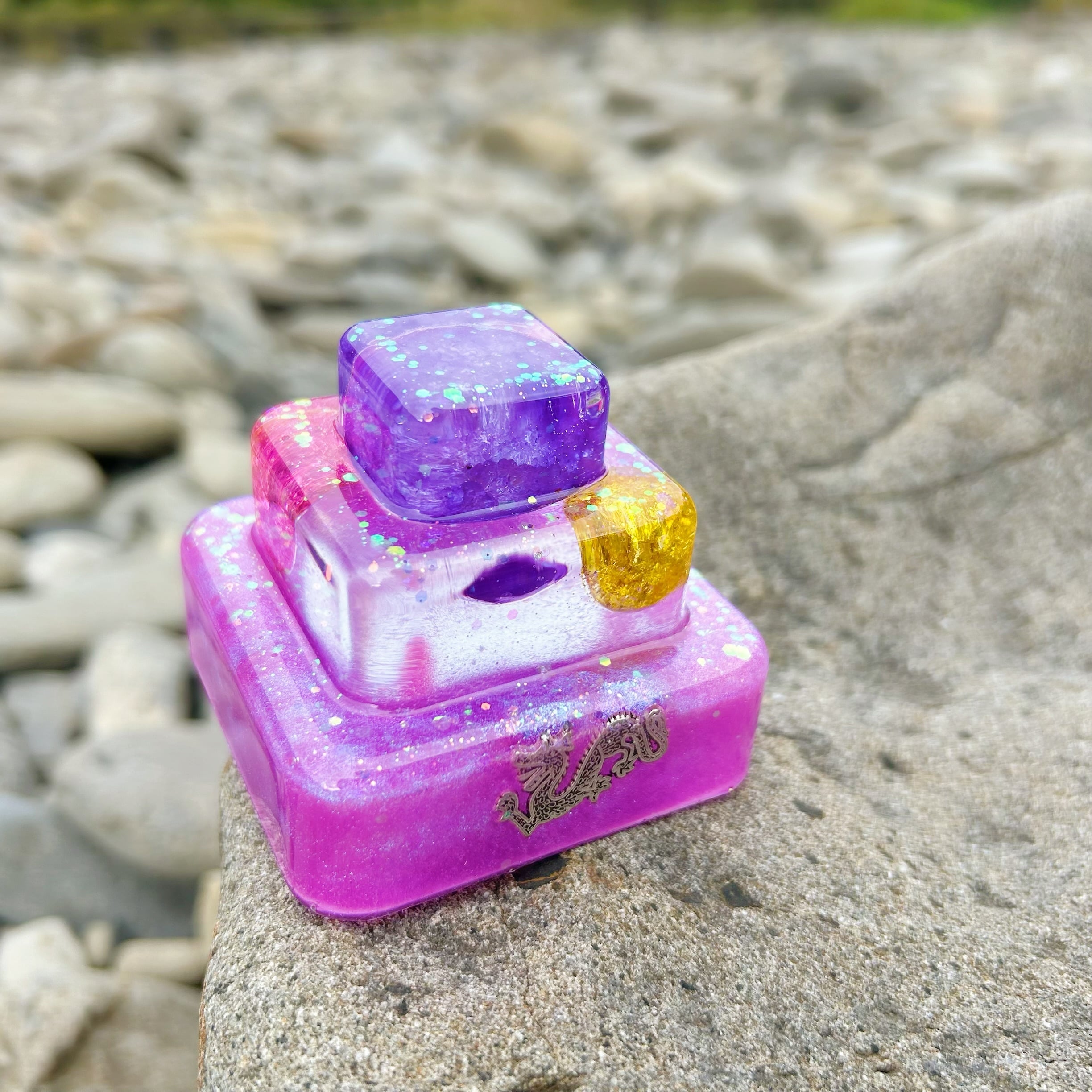 深い紫の直感力、桃色の優しい愛の氣、そして金色の繁栄の光が重なり合い、持つ方の人生に心の平穏、直感の目覚め、運氣の流れの上昇を呼び込むよう願いながら制作しました。