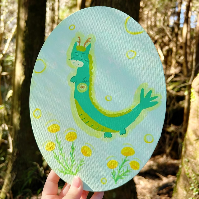 □作品名:勇ましい緑龍さまと金色のまる花の開運アート