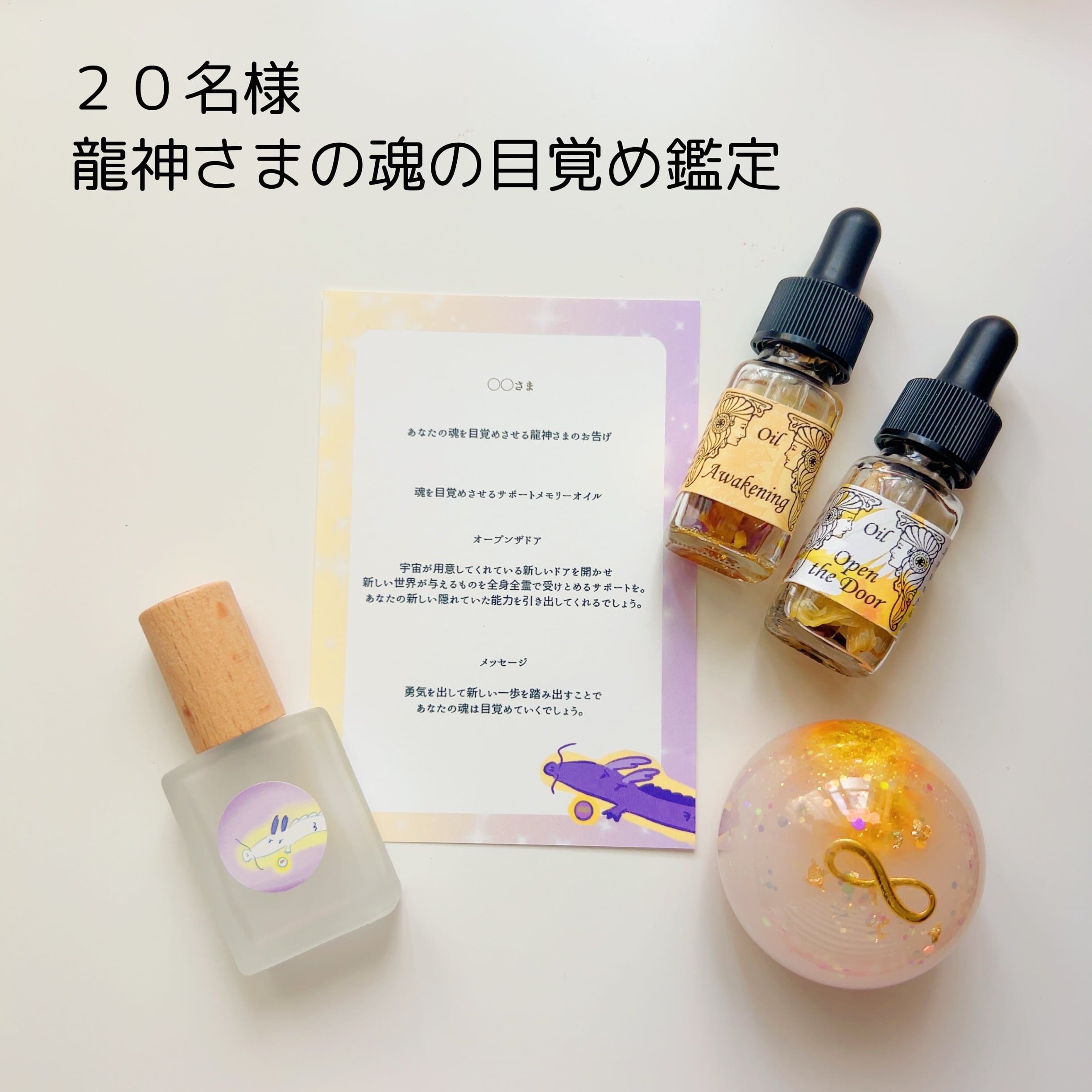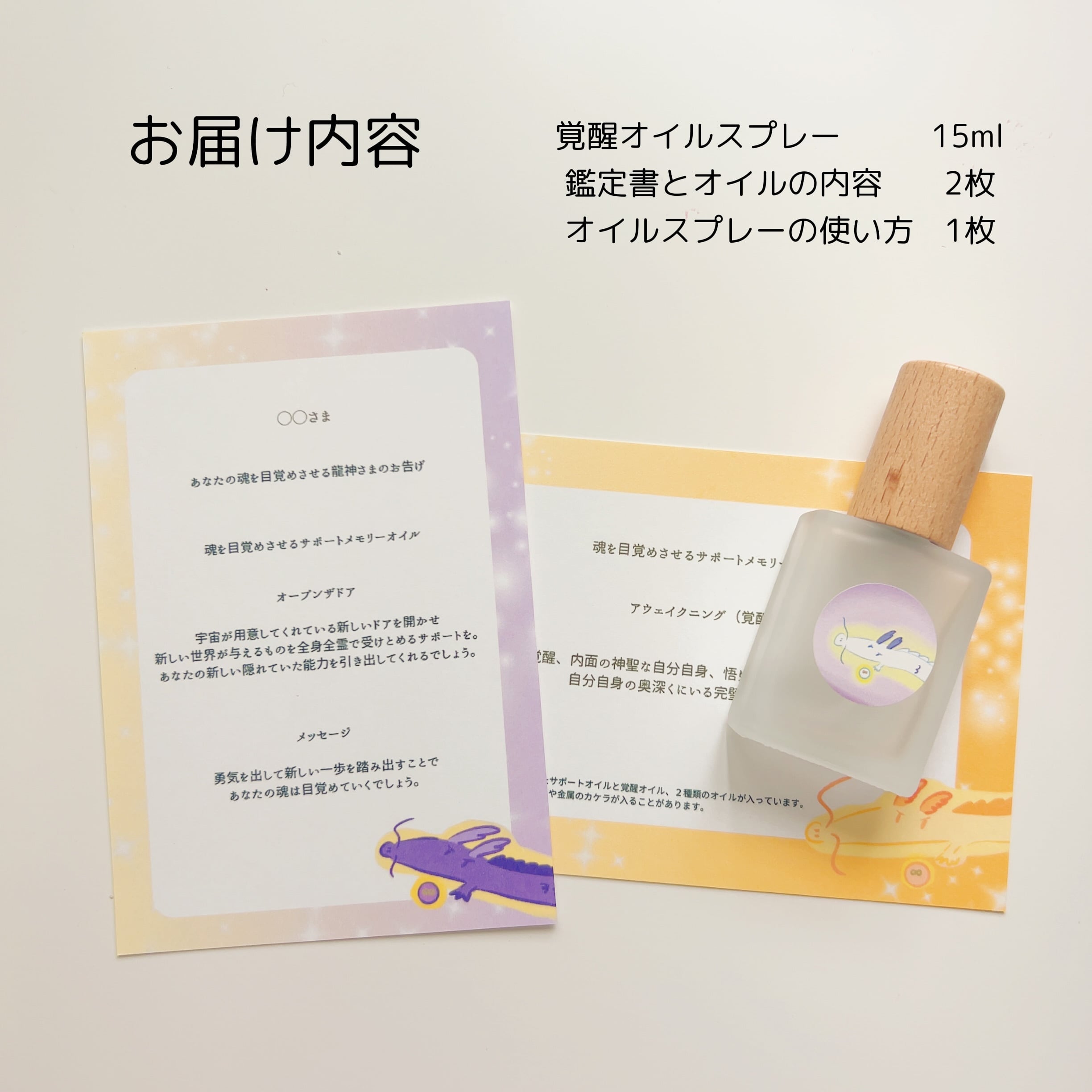 目覚めのオイルと90種類のオイルの中から1本龍神さまに選んで頂きスプレーにしてお届けします。