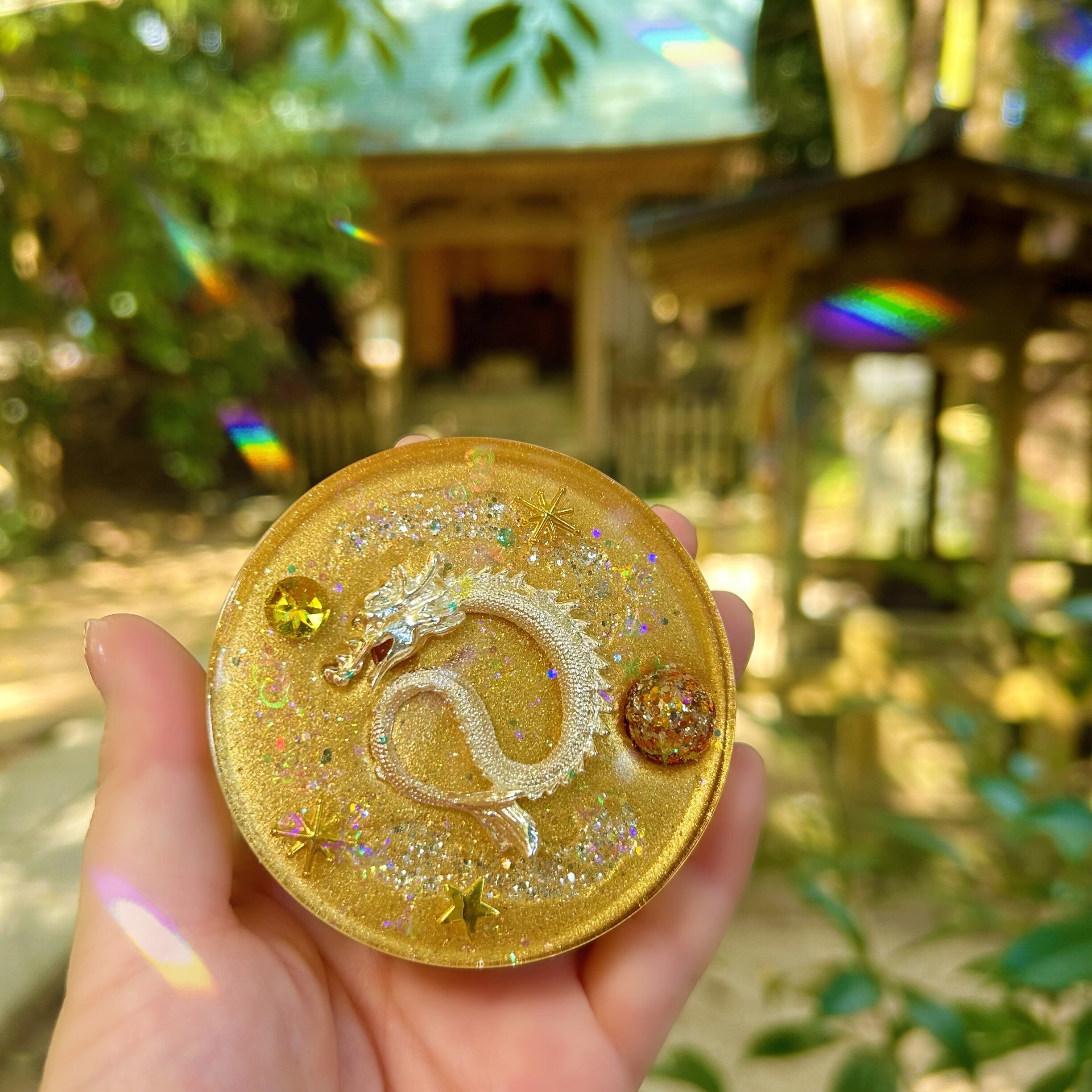 こちらのオルゴナイトは、金色の光をまとった神々しい龍神さまと制作した金運上昇オルゴナイトです♪