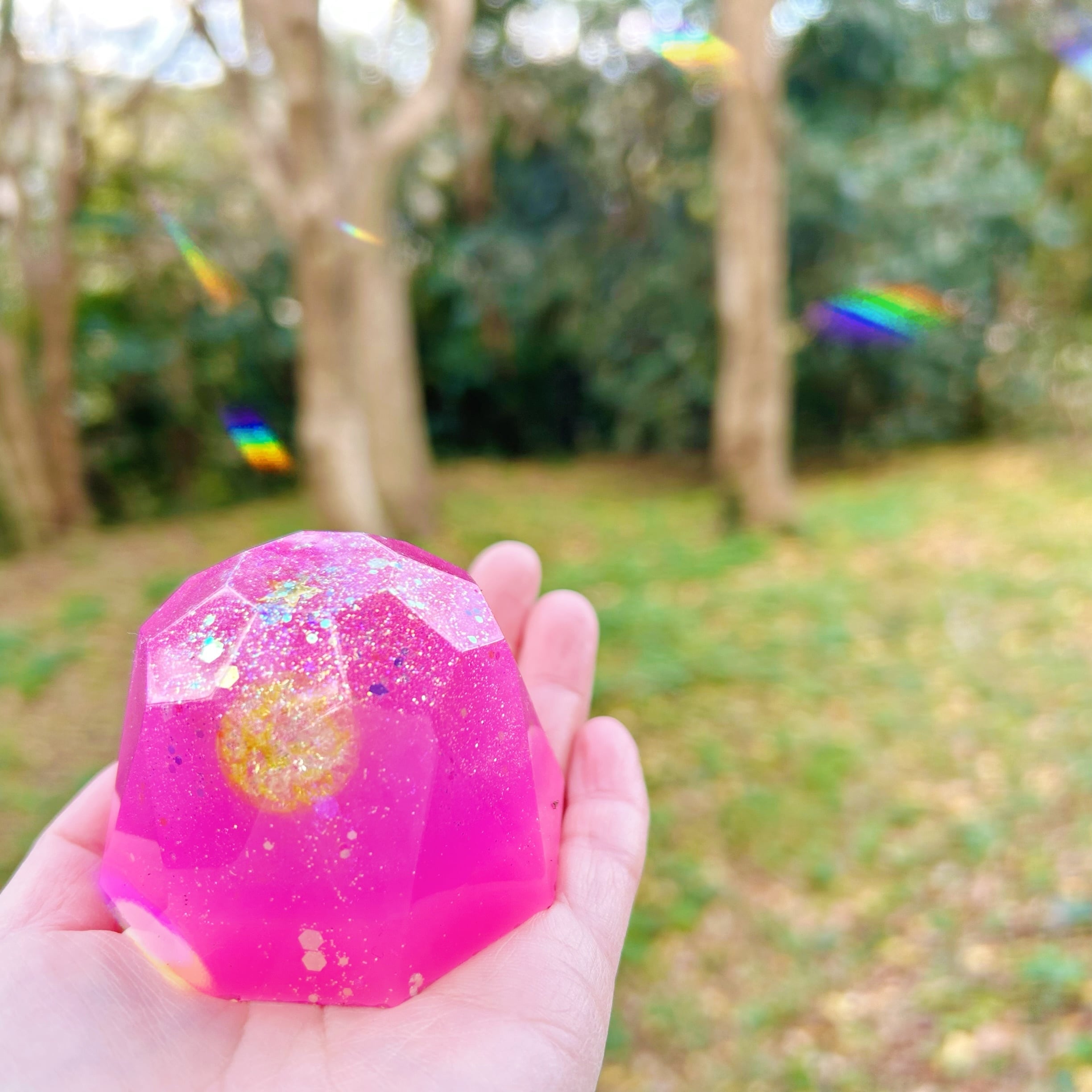 神社やパワースポットではオルゴナイトのきらめきや色味が変わるので、不思議な世界のエネルギーを実際に感じてみてください♪